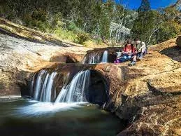 Choose your own adventure and drive, cycle or walk to the bridge at the bottom of the Gorge. Park you bike or car, and carefully make your way down to the smooth granite beds by the pools and falls of Spring Creek. Caution is advised when negotiating paths and rocks to the waters edge, as it can get quite slippery.